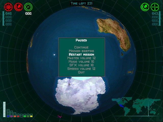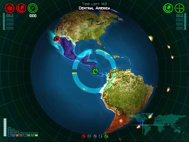 Global Domination merges turn-based grand strategy with real-time action sequences, creating a hybrid experience that challenges both your tactical planning and your reflexes. Each of the twenty missions begins with a full-motion video briefing, setting the stage before you dive into the main strategic interface: a spinning hologram globe reminiscent of Risk’s territorial map. From there, you must allocate resources, reinforce borders, and decide whether to adopt a defensive posture or launch a preemptive strike.