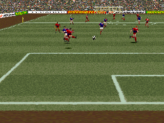 Visually, J. League Jikkyō Winning Eleven captures the vibrant atmosphere of Japanese stadiums with colorful player sprites and detailed pitch textures. While the title predates today’s photorealistic standards, the graphics stand out for their clean presentation and smooth motion. Animations such as slide tackles, goal celebrations, and dynamic camera angles bring the action to life in a way that was impressive for its time.