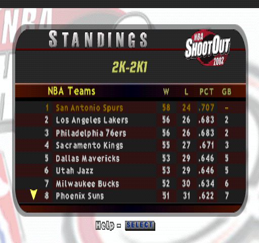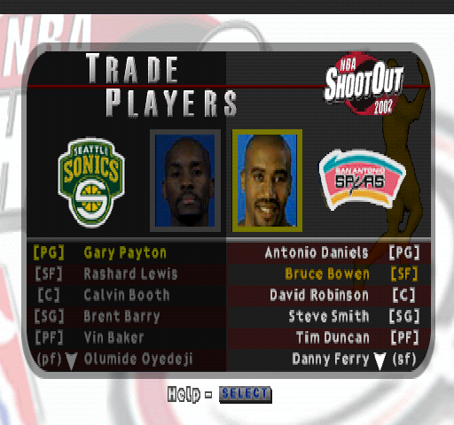 Menu navigation is clean and straightforward, with team rosters displayed alongside player stats and headshots. Loading times are moderate, but the payoff is worthwhile when you see the highly detailed courts and player animations that distinguish NBA ShootOut 2002 from its contemporaries.