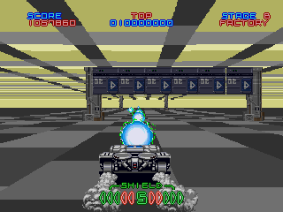 Night Striker delivers a pulse-pounding third-person shooter experience that instantly recalls the frenetic action of classics like Space Harrier. You pilot a sleek, armored flying car through a series of increasingly challenging stages, blasting waves of enemy drones, turrets, and aerial fighters. The controls are tight and responsive, allowing for swift lateral and vertical movements while maintaining a satisfying sense of momentum.