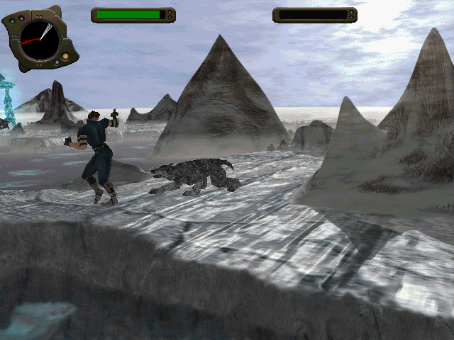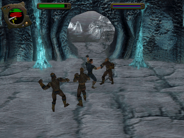 3D character models stand in sharp relief against these detailed backdrops. While low-poly by today’s standards, the protagonists and hostile aliens possess fluid animations—especially noticeable during combat flips, spinning kicks, and grappling moves. Muzzle flashes, muzzle smoke, and electric sparks during melee clashes add dynamic flair.