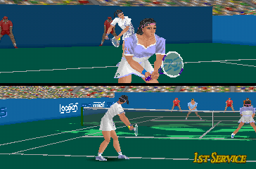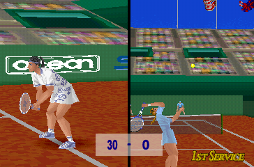 Optional camera angles allow you to appreciate different aspects of the court, whether you prefer a strategic overhead perspective or a more immersive baseline view. Frame rates generally remain smooth, even in split-screen doubles matches, ensuring the action never feels choppy or disconnected. All told, the graphics might be dated by modern metrics, but they capture the ambition of 3D sports titles in the mid-’90s and still hold nostalgic appeal.