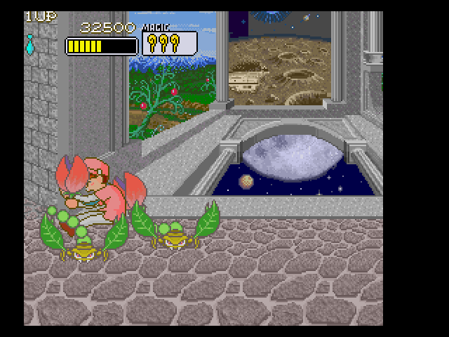 Visually, Pu•Li•Ru•La is a psychedelic feast. The game blends digitized photographs and hand-drawn sprites into a surreal collage, creating an aesthetic that seems lifted from a fever dream. Backgrounds pulse with neon colors, bizarre shapes, and shifting patterns that keep you hooked from start to finish. Every stage feels like stepping into a different corner of a whimsical kaleidoscope.