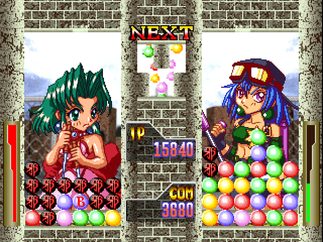 Puzzle Arena Toshinden takes the fast-paced intensity of the classic Toshinden fighters and channels it into an inventive puzzle framework. At its core, the game plays much like Sega’s beloved Puyo Puyo series: players stack colorful balloons in a grid and clear them by connecting three or more of the same hue. This simple premise belies a deep strategic layer, where timing, positioning, and anticipating your opponent’s next move all play critical roles.
