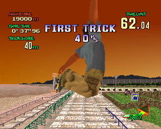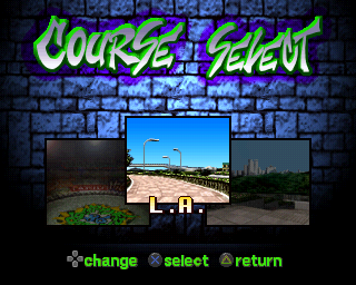 On its original PlayStation hardware, Street Sk8er sports colorful, low-polygon environments that capture the energy of late-’90s skate culture. Textures are straightforward but vibrant, dressing up urban backdrops with graffiti, ramps, and neon signs that pop against clear blue skies or gritty city alleys.