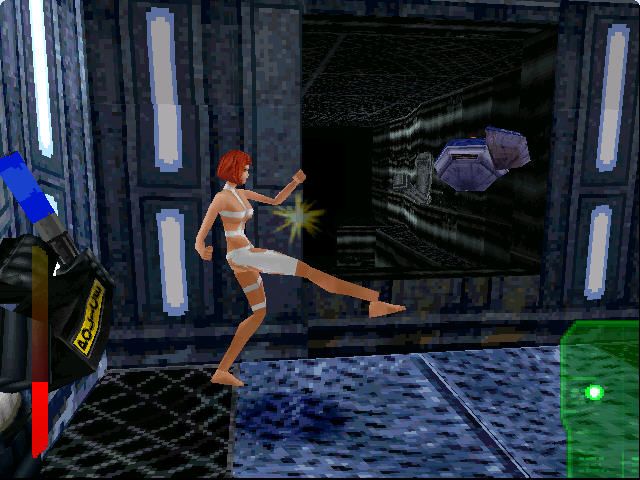 The Fifth Element’s visual style captures the colorful, futuristic flair of Luc Besson’s vision. Character models for Korben and Leeloo are instantly recognizable, with Leeloo’s signature orange hair and white costume rendered in sharp detail. Supporting characters and enemies boast solid texturing, though some NPC faces can appear a bit flat in close-up. Still, the overall fidelity matches what you’d expect from a late ’90s 3D action title.