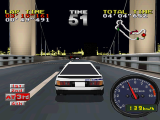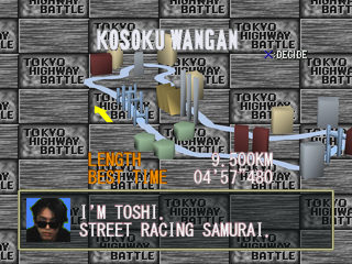 For a mid-’90s PlayStation title, Tokyo Highway Battle delivers surprisingly detailed road environments that capture the neon glow and urban sprawl of Tokyo’s famous highways. Each track is modeled to resemble actual expressway segments, featuring realistic overpasses, streetlights, and roadside billboards that set an immersive nighttime racing atmosphere.