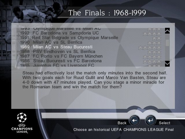 While not a narrative-driven title in the traditional sense, UEFA Champions League Season 1999/2000 weaves its own compelling story through Scenario mode. By replaying classic finals—from Ajax’s dominance in the early ’70s to Manchester United’s treble-winning triumph in 1999—you’re immersed in football history. Each scenario poses unique challenges, from defending narrow leads to chasing late comebacks, letting you rewrite or honor legendary moments.