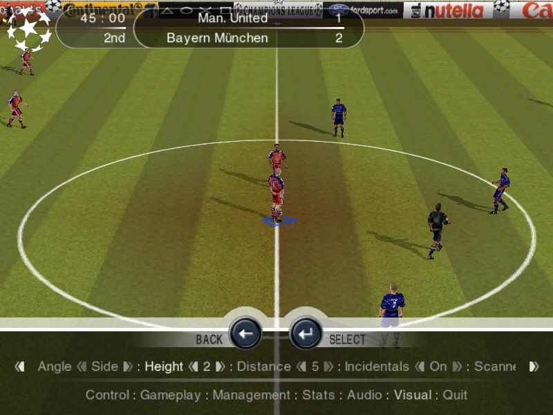 Player animations are smooth for the time, with realistic dribbling, sliding tackles, and goal celebrations that give matches a dynamic feel. While crowd details are more static than modern titles, the sense of occasion remains strong thanks to animated camera angles that zoom in on goal-mouth action or pull back for sweeping wide shots. The day–night cycle in some scenario replays also adds atmospheric variety as floodlights bathe the pitch during evening fixtures.