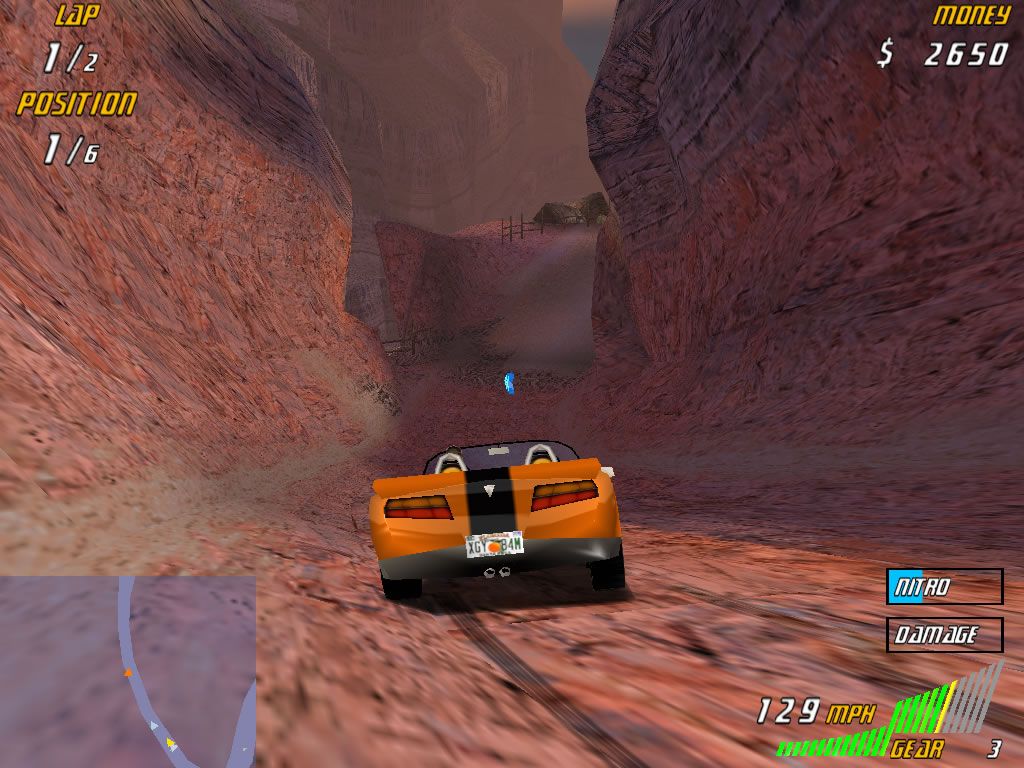 The tracks are peppered with obstacles and jumps, forcing you to balance reckless speed with cautious timing. Rival AI drivers are aggressive, often bumping and pushing to knock you off course, and the occasional police chase ups the tension. Scattered power-ups—ranging from instant repairs to nitro boosts—add a layer of strategic depth: do you veer off to collect cash, risking a crash, or focus on raw speed?