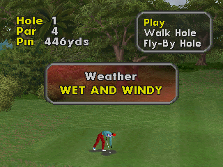 The title offers two distinct courses—a rolling country layout and a lush tropical resort—each presenting unique hazards and wind conditions. Customizable characters let you tweak appearance and basic stats to suit your playstyle, whether you’re favoring power off the tee or finesse on the greens. With two difficulty settings, players can ease into the basics or push themselves against tighter fairways and more aggressive pin placements.