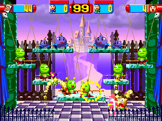 YoYo’s Puzzle Park sports a vibrant, cartoon‐inspired art style that feels like a modern homage to ’90s arcade titles. Each level is themed around different sections of Gussan Paradise—roller coaster tracks, bumper car rings, and haunted house segments—giving you fresh backdrops as you progress. The color palette is bright and varied, keeping the action visually engaging on every screen.