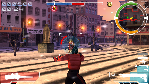 Of course, technical constraints of the PSP do show themselves in occasional texture pop-in and a somewhat choppy frame rate during busy sequences. However, these moments are rare enough that they never interrupt the core fun. The user interface stays out of the way, with clear reticles and an unobtrusive combo meter that keeps you focused on the action. Overall, the graphics do more than enough to support the game’s frenetic pace and comedic style.