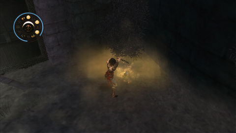 Lighting and particle effects are particular highlights on the handheld. Dust motes drift through torchlit halls, and dynamic shadows stretch eerily across temple walls, underscoring the game’s gothic undertones. The PSP hardware handles water reflections and spark animations during combat without significant frame drops, maintaining a steady 30fps for most of the experience.