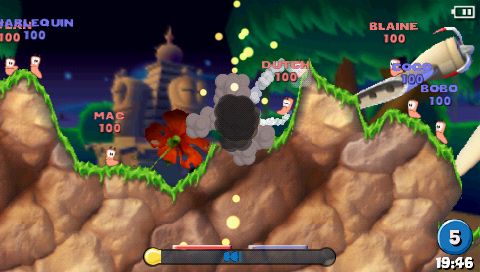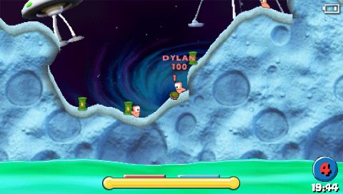 On the DS, the dual-screen setup is utilized smartly: the top display shows the combat zone, while the bottom screen provides a zoomed-out view or quick-access menus. This separation keeps the battlefield uncluttered and lets you plan your next shot with ease. The PSP version offers a slightly sharper image overall, thanks to its higher resolution, but both platforms maintain smooth framerates—even when the entire landscape is crumbling around your worms.