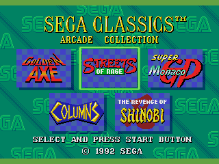 The Sega Classics Arcade Collection (Limited Edition) is a pure, unaltered window into the early Mega Drive era. As a bundle title exclusive to Mega CD systems, it never saw standalone store release, making it a collector’s curiosity as much as a playable anthology. The package is trimmed down to just five games, taking up minimal CD space, but offers a broad range of genres—from beat ’em ups and platformers to puzzle and racing titles.