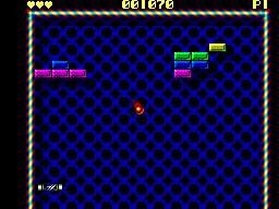 Visually, Arcade Smash Hits stays remarkably faithful to the original arcade cabinets. Pixel art sprites retain their chunky charm, and the color palettes have been carefully adapted to the Master System’s capabilities. Centipede’s vibrant foliage and segmented foes look crisp, while Breakout’s colorful bricks snap into place with satisfying clarity. Missile Command’s cities and incoming warheads are easily distinguishable, even amidst the chaos.