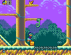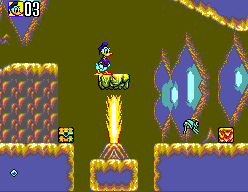 Deep Duck Trouble starring Donald Duck delivers a classic side-scrolling platforming experience that feels both approachable and challenging. Players guide Donald through four distinct zones—jungle, inlet, volcano, and valley—each with its own unique hazards and enemy types. The controls are tight and responsive: Donald can perform standard jumps, head stomps, and brick kicks, allowing for a variety of strategies when tackling foes and navigating treacherous terrain.