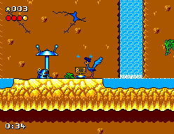 Hazards range from classic Looney Tunes ACME contraptions to natural desert perils like quicksand pits and rolling boulders. The clock constantly nudges you forward, but secret alcoves hide extra stars and bonus stages where you can stockpile time. This risk-and-reward dynamic encourages you to explore every ledge and crack in the canyon walls—though lingering too long gives Wile E. plenty of opportunity to spring traps of his own.