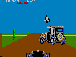 Enemy sprites are large and expressive, with exaggerated animations that telegraph incoming attacks just enough for you to react. The transitions between the open highway and enclosed interiors are handled smoothly, and even on older CRT sets the frame rate remains consistent, ensuring that no shot is ever missed due to slowdown or flicker.