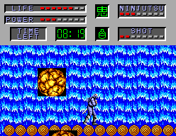 As nations scramble and fail to quash this nuclear menace, a call goes out for the one man capable of swift, covert retribution: Joe Musashi. His mission is straightforward but deadly—slash through Cyber Zeed’s fortified strongholds, recover stolen plutonium cores, and dismantle the leadership before the world is reduced to radioactive rubble. The simplicity of the premise keeps the focus squarely on the action while still providing a sense of urgency.