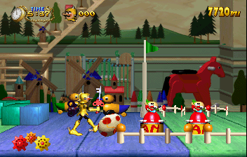 Graphically, the title offers a distinctive, storybook-style presentation that sets it apart from other Saturn platformers. The smooth animations, detailed backdrops, and cohesive art direction create an inviting toy-world atmosphere. Coupled with an upbeat soundtrack and charming sound design, the audiovisual package elevates the player’s immersion.