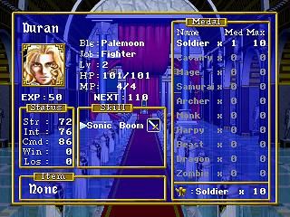 Cutscenes and still images used to advance the story are presented with a stylish, hand-drawn aesthetic that adds to the game’s charm. While the resolution and frame rate may feel dated by today’s standards, Dragon Force’s art direction remains expressive. Background music and sound effects complement the visuals, elevating key moments—whether the fanfare of victory or the ominous heralding of Madruk’s return—with crisp, memorable audio cues.