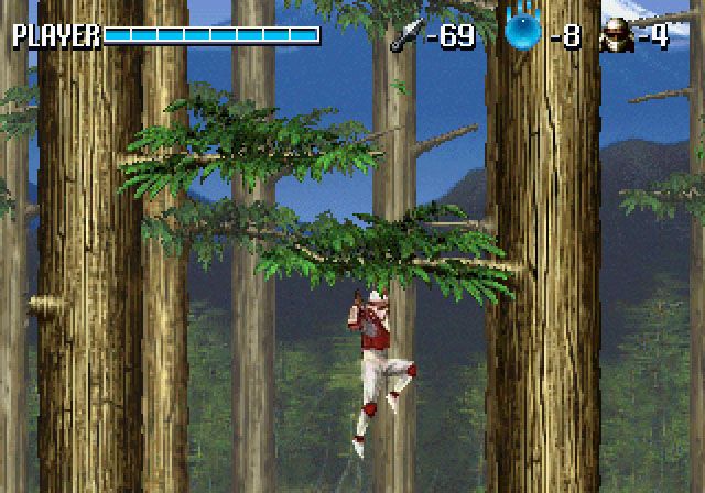 On the Sega Saturn, Shinobi Legions stands out as a visual showcase for the system’s 2D capabilities, enhanced by occasional live-action cutscenes that break up the action. In-game sprites are crisply animated, with smooth sword swings, shuriken tosses, and enemy death animations that even feature realistic blood splatters—a series first that adds a gritty edge to the ninja conflict. Backgrounds are richly detailed, from swaying jungle vines to the misty slopes of Mount Fuji, creating a sense of immersion in Sho’s perilous journey.