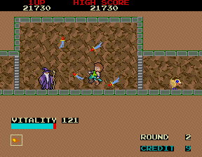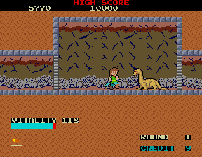 As an early arcade title, Dragon Buster showcases bright, bold sprite work that gleams on the coin-op cabinet. Each stage features distinct visual themes: dripping stalactites in the caves, gothic spires in the tower, and voluminous stone walls in the castle. Enemy designs are instantly recognizable—feral beasts, armored knights, flying gargoyles—each animated with enough frames to convey weight and intent, giving the world a palpable sense of danger.