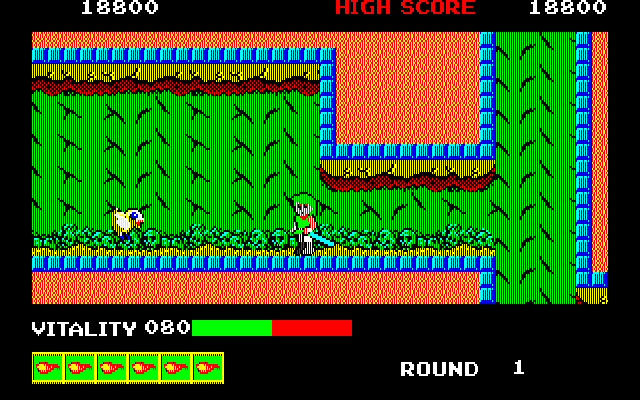 Power-ups in Dragon Buster include temporary weapon upgrades and health restoratives hidden in breakable objects or dropped by defeated foes. These enhancements feel significant, rewarding thorough exploration. You’ll also find vertical and horizontal passageways, requiring precise jumps and timing to navigate narrow platforms. The game’s pioneering “vitality” meter—the first of its kind in action titles—measures both your remaining health and acts as a silent coach, urging you to play skillfully. Overall, the gameplay strikes a satisfying balance between challenge and fairness, laying the groundwork for many action-platformer conventions that followed.