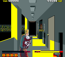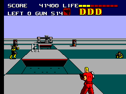 Dynamite Duke’s visuals adopt a pseudo-3D style courtesy of its over-the-shoulder perspective, delivering a sense of depth uncommon in side-scrollers of its era. Environments are richly detailed: industrial complexes, dimly lit corridors, and outdoor helipads all feature layered backgrounds that create immersive battlefield vistas. Enemy sprites appear crisply against these backdrops, making it easy to distinguish between different threat types even in the heat of battle.