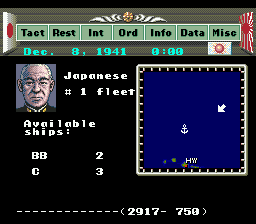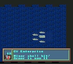 During direct engagements, the screen shifts to more detailed naval art, showcasing side-view sprites of cruisers, destroyers, and aircraft carriers exchanging fire. Although these battle animations are brief and somewhat repetitive, they provide enough visual feedback to make each skirmish feel alive. Explosions, ship damage indicators, and sinking sequences punctuate the otherwise austere interface, giving players an occasional cinematic flourish.
