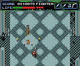 Power-ups play a crucial role in maintaining momentum. Scattered throughout each level are chests that open when shot, granting armor, speed boosts, or new projectile types. On the Genesis port, you can even cycle through power-ups by continually firing at a closed chest—adding a layer of resource management as you decide which enhancement best suits your current predicament. This simple yet effective mechanic keeps gameplay fresh and rewards precision aiming.