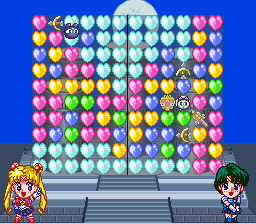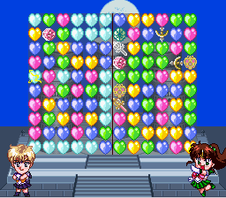 Bishōjo Senshi Sailor Moon S: Kurukkurin revitalizes the classic competitive puzzle genre by placing the beloved Sailor Guardians at the center of the action. Each match unfolds on a 10×6 grid of clear hearts, and players select one of ten playable characters—each armed with unique special moves that can dramatically shift the board. The primary objective is simple: convert clear hearts into colored hearts, form contiguous groups, and trigger clears to send treasures spiraling toward the bottom of the screen. The player who amasses the most treasures by the round’s end claims victory.