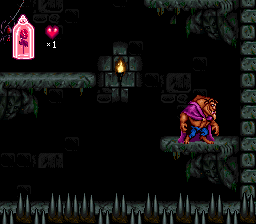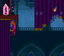 On the graphical front, Beauty and the Beast embraces the limitations and charm of early-’90s console hardware. The richly colored backgrounds capture the Gothic elegance of the Beast’s castle—from the flickering torchlight in the dungeons to the sweeping arches of the grand hall. Each room feels hand-crafted, with layered foreground and background elements that give depth to the side-scrolling action.