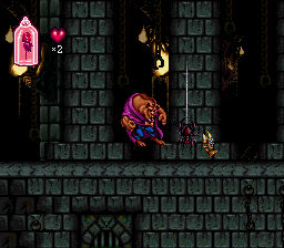 Character sprites are well-animated for their era. The Beast’s lumbering gait, his retracting claws, and the photographic slide when he loses a life all bring personality to the hero. Enemy designs—giant spiders, animated candlesticks with mischievous grins, gargoyle statues that come to life—are distinct and memorable, ensuring each new foe presents a fresh visual treat.