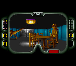 In first-person mode, the textures and wall surfaces stand out with crisp pixel art, evoking the claustrophobic tension of early 90s shooters. Dimly lit corridors and flickering light fixtures heighten the atmosphere, and the nighttime vision effect, though rudimentary, genuinely feels like you’ve grabbed goggles off a security rack. It’s an impressive feat that the SNES handles these transitions without major slowdown.