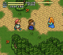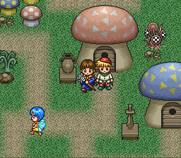 The visual style of Mahōjin GuruGuru 2 faithfully recreates the anime’s goofy charm with crisp 2D sprites and expressive animations. Character designs pop against richly detailed backdrops—the winding roots of the Dark Forest practically feel alive, and flickering torchlight in stone corridors casts an atmospheric glow. Sprites move smoothly, whether you’re running through overworld fields or engaging in high-speed combat encounters.