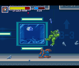 On the Super Nintendo hardware, War of the Gems stands out with colorful, vibrant pixel art that captures the spirit of Marvel’s larger-than-life characters. The sprites for Spider-Man’s acrobatics and Hulk’s hulking frame are both well-animated and expressive, giving each hero a distinct visual identity on screen. Villain designs, from corrupted Avengers duplicates to classic baddies, are equally detailed and menacing.