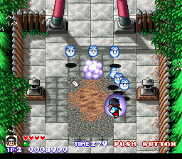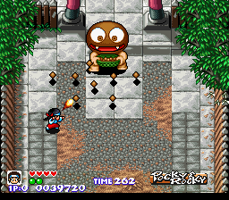 Visually, Pocky & Rocky employs a charming “super deformed” art style that instantly captures attention. Character sprites are adorably exaggerated, with oversized heads and expressive faces, lending a lighthearted tonality to every encounter. The cartoony proportions remain consistent across all creatures, making even fearsome bosses feel endearing rather than menacing.