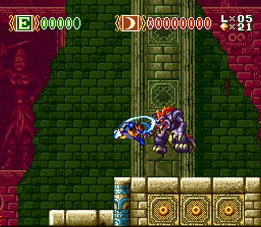 Skyblazer boasts vibrant, hand-painted backgrounds that bring each stage to life. From lush forest canopies with sun-dappled leaves to foreboding lava caverns aglow with molten rivers, the color palette is varied and rich. Each environment features multiple layers of parallax scrolling, creating a strong sense of depth as Sky runs, jumps, and flies across the screen.