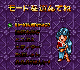 On the Super Famicom hardware, Rulue no Tetsuwan Hanjōki offers bright, cheerful pixel art that pops off the screen. Character sprites are wonderfully expressive—Rulue’s confident grin and fluttering ribbons give her personality even in the world map’s limited resolution. NPC portraits peppered into dialogue boxes add a manga-style flair that keeps interaction scenes visually engaging.