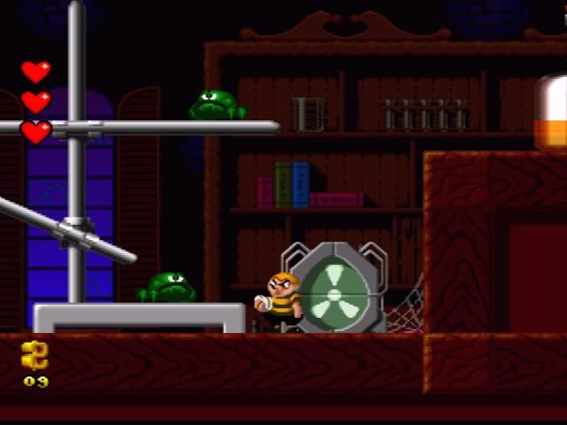 Enemy designs are imaginative, nodding to the Addams Family’s macabre humor. Gigantic rats, mischievous skulls, and even mini handprints scuttle across the screen, each with its own movement pattern. While not groundbreaking by 16-bit standards, the game’s graphics excel within the handheld context, making good use of sprite flicker avoidance and clear visual feedback when Pugsley takes damage or collects health symbols.