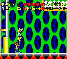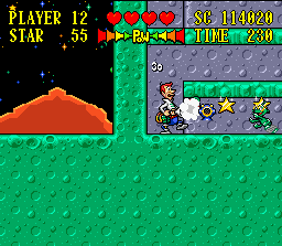 George’s health is tracked by heart icons at the top of the screen, and refilling your hearts requires collecting heart-shaped power-ups dropped by defeated enemies. Scattered food items also boost your score, and achieving high scores unlocks bonus minigames that offer further chances to stock up on lives and hearts. This scoring system adds replay value, encouraging you to revisit earlier stages with refined strategies to reach higher thresholds and unlock hidden rewards.
