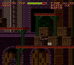 Each mission’s unique perspective influences the visual presentation significantly. The 2D side-scroll levels sport crisp, hand-drawn environments that pop against darker silhouettes of enemies, making it easy to distinguish pickups like counterfeiting plates. In contrast, the third-person alleyway stage relies heavily on shadow play and simple geometry, which occasionally makes depth perception challenging when trying to hit targets on balconies or in upper windows. The first-person rooftop duel, though basic by today’s standards, impresses through its dynamic skyline and occasional weather effects that enhance the immersion.