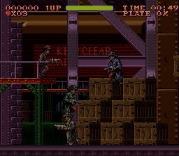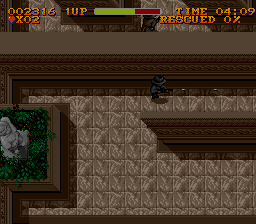 Switching perspectives so frequently can be both a blessing and a curse. The dockside shoot-’em-up mission tasks you with strafing gangsters using a tommy gun in true run-and-gun fashion, while the courthouse stage switches to a top-down view that requires a more strategic approach as you rescue hostages and fend off waves of bad guys. This shifting viewpoint demands that players quickly recalibrate their spatial awareness, which keeps sessions engaging but occasionally leads to steep difficulty spikes—particularly if you’ve just adjusted from a fast-paced side-scroll to the methodical pace of the top-down shooter.