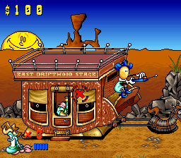 Accompanying you on this daring mission is Mo Crash, your spirited sidekick. Though Mo offers little in terms of direct gameplay assistance, the duo’s offhand banter in cutscenes adds humor and personality. Brief interludes between stages reveal snippets of the gang’s schemes and hint at Black Bart’s ultimate plan, giving you just enough motivation to keep pushing forward.