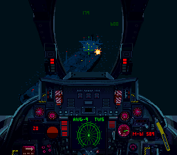 The cockpit exterior and HUD elements are crisp and neatly drawn, ensuring critical flight data is always legible. Weather effects—such as the hazy glow of sunset or the stark contrast of runway lights against the night sky—help immerse you further into the mission environment. Though polygons are simple by modern standards, the overall aesthetic conveys the high-speed drama of aerial combat effectively.