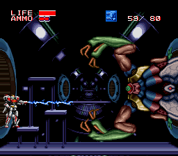 Built on 16-bit hardware, Xardion’s visuals remain impressive years later, boasting richly detailed sprites against multi-layered backgrounds. Triton’s metallic armor gleams under atmospheric lighting, Panthera’s fur is rendered with surprising texture, and Alcedes’ segmented exoskeleton stands out in bold red hues. Each planet environment—icy tundra, desert wasteland, and biomechanical fortress—features its own palette and thematic elements, giving the world palpable variety.