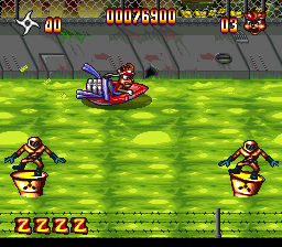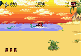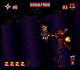 Visually, Zero the Kamikaze Squirrel stands out among 16-bit platformers with its vibrant color palette and fluid animations. The titular squirrel is rendered with expressive frames that bring personality to each spin and jump. Enemies have distinct silhouettes, ensuring that players can quickly identify threats even in busier environments.
